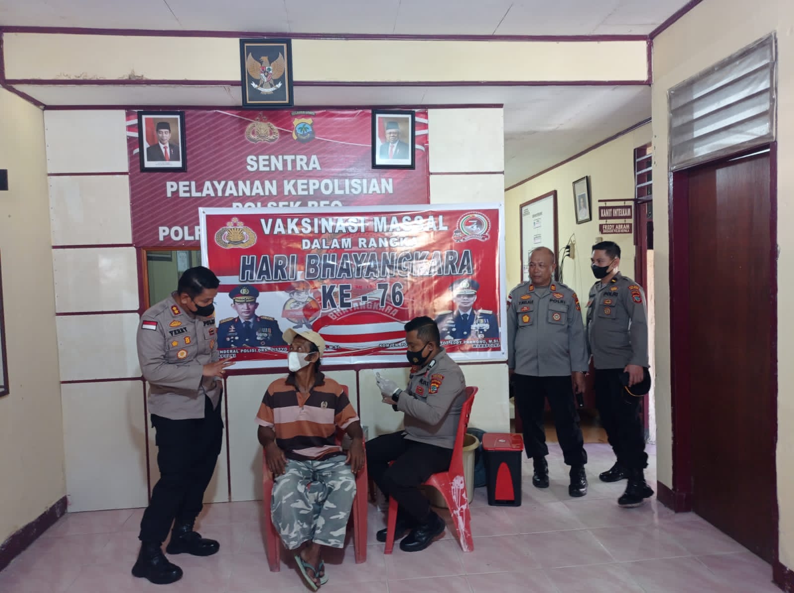 Jelang HUT Bhayangkara ke 76, Kapolres Talaud Pantau Vaksinasi Massal Covid 19 di Beo