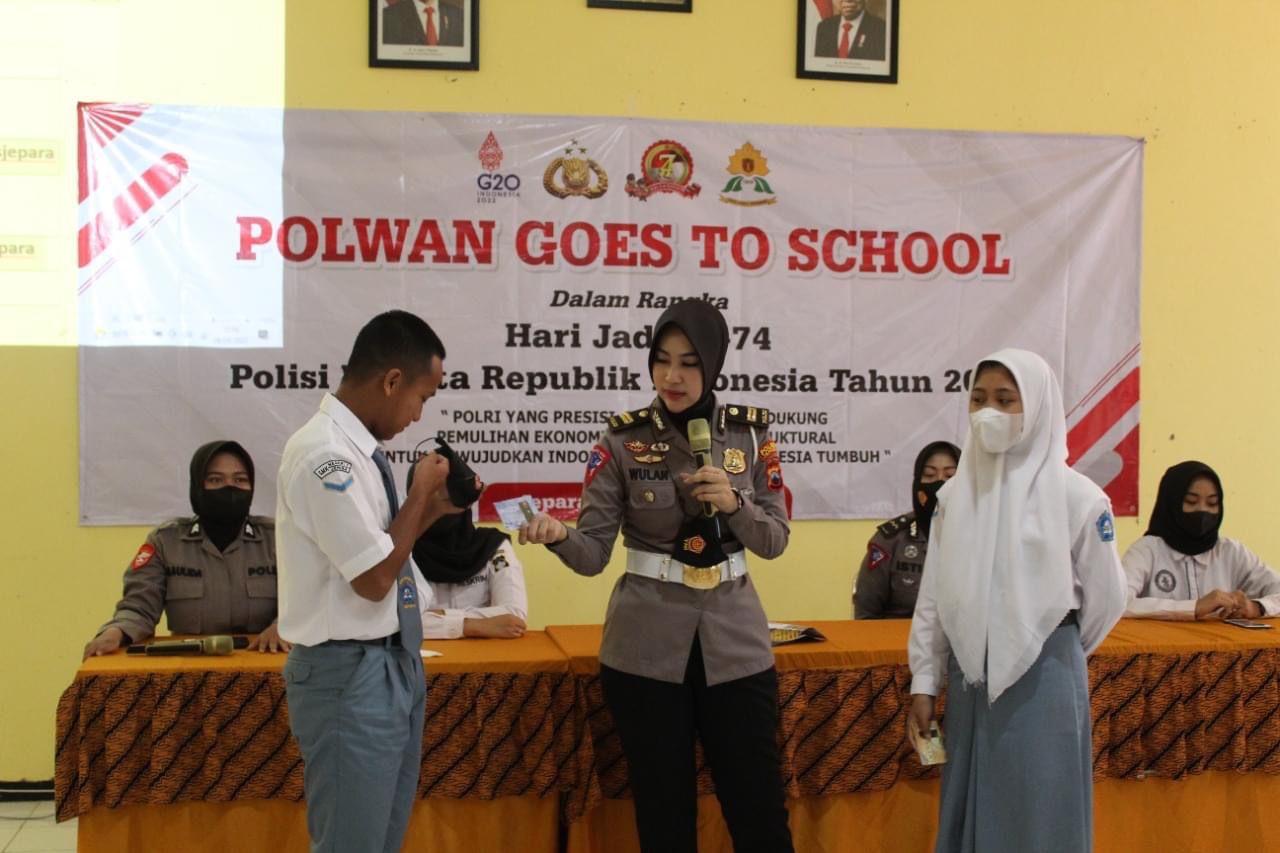 MediaSuaraMabes, Jepara – Menyambut hari jadi Polisi Wanita (POLWAN) ke 74 yang jatuh pada tanggal 1 September mendatang, Polwan Polres Jepara melaksanakan kegiatan Polwan Goes To School.