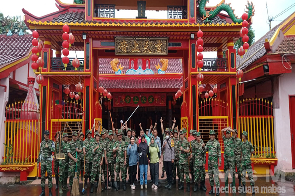MediaSuaraMabes, Jepara – Jelang Perayaan Imlek 2023, anggota TNI dari Koramil Kodim 0719/Jepara melaksanakan kegiatan Kerja Bakti pembersihan Klenteng Hian Thian Siang Tee yang berada di Desa Welahan, Kecamatan Welahan, Kabupaten Jepara. Jumat, (20/1/2023).