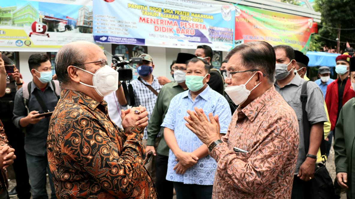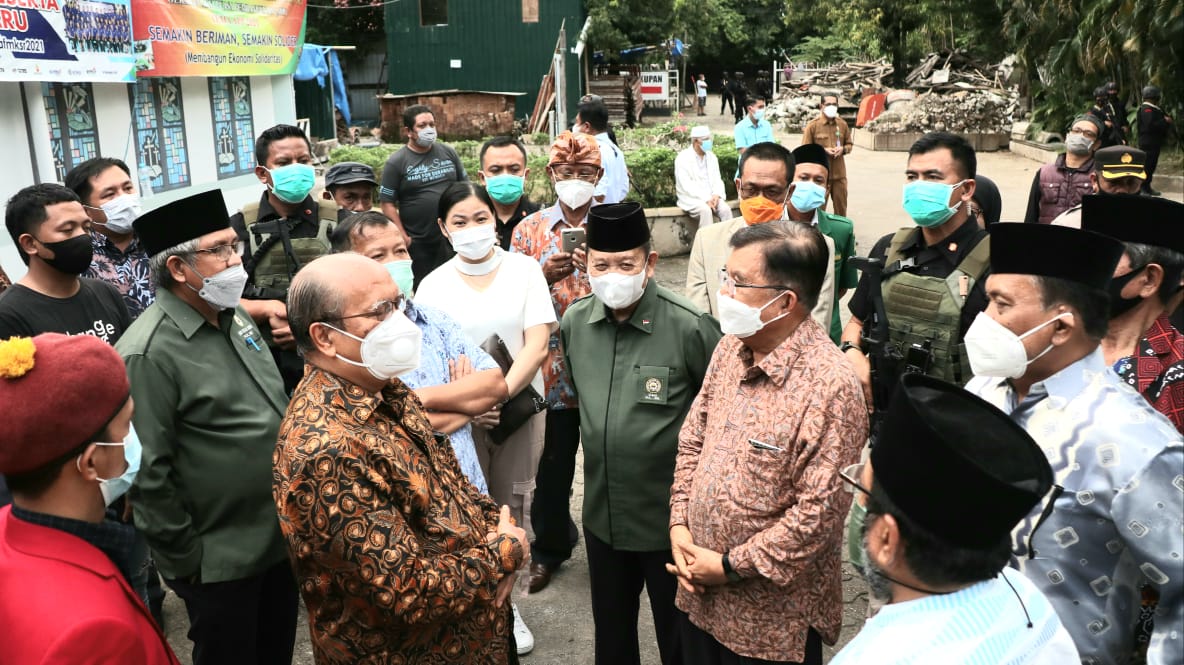 SuaraMabes, Makassar – Sehari setelah peristiwa aksi bom bunuh diri yang terjadi di gereja katedral Makassar, Ketua umum Dewan Masjid Indonesia (DMI) Jusuf Kalla bersama sejumlah pengurus Forum Komunikasi Umat Beragama Sulawesi Selatan (FKUB-Sulsel) mengunjungi lokasi kejadian. Kunjungan tersebut dalam rangka menyampaikan belasungkawa dan dukungan moril kepada pengurus gereja katedral Makassar dalam hal ini diwakili oleh Uskup Agung Makassar Mgr. Jhon Likuada.