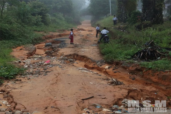 Salah seorang warga yang tidak ingin di sebut namanya saat mengantar anaknya kesekolah saat di komfirmasi awak media ini tanggal 29/7 terkait sarana jalan yang hancur tersebut mengaku sulit sekali pak apa lagi di saat musim penghujan seperti ini..