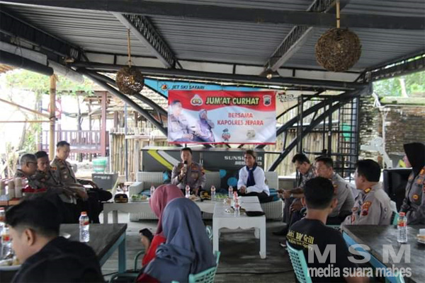 MediaSuaraMabes, Jepara – Gelaran Jumat Curhat Kapolres Jepara AKBP Warsono, SH., SIK., MH, didampingi Wakapolres Kompol Berry, ST., SIK., MH, dan pejabat utama Polres Jepara melakukan dialog bersama para pengusaha perhotelan dan cafe di Jepara.