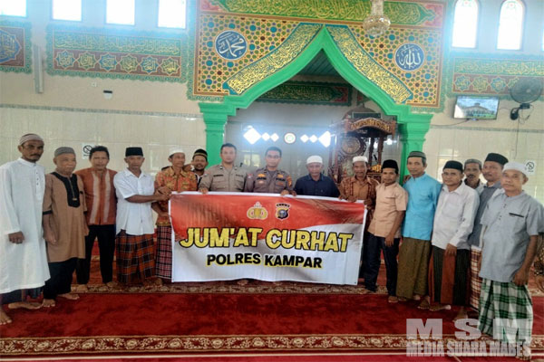 Dalam kegiatan Jumat Curhat ini, Kapolres Kampar, AKBP Didik Priyo Sambodo, SIK diwakili IPDA Jafni menyampaikan himbauan dan pesan-pesan Kamtibmas serta mengajak seluruh lapisan masyarakat untuk bersama-sama menjaga Harkamtibmas di lingkungan sekitar tempat tinggal masing-masing.