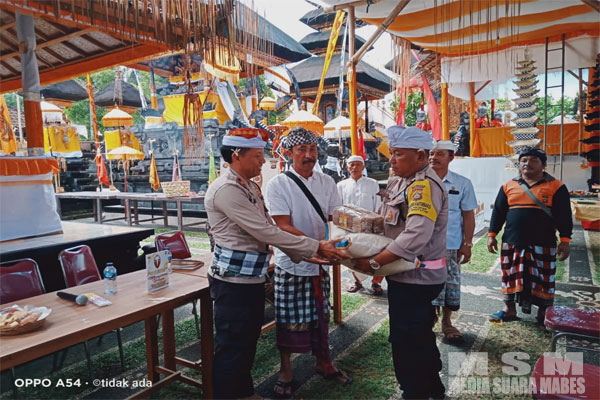 Puncak acara ditandai dengan penyerahan sarkon yang berisi punia, pakaian untuk pemangku dan pecalang, beras seberat 25 kg, serta dupa sebanyak 2 bal oleh Kasat Binmas Polres Jembrana sebagai tanda kebersamaan dan dukungan terhadap masyarakat Desa Pulukan.