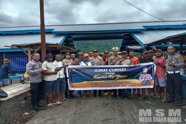 MediaSuaraMabes, Yapen – Dalam mendapatkan berbagai keluh kesah masyarakat dengan tujuan tetap menjaga kamtibmas, Polri terus melaksanakan kegiatan jumat curhat seperti di lakukan oleh Polsek Kepulauan Yapen Polda Papua yang mana menyikapi yang terjadi beberapa waktu lalu dimana terjadinya pemalangan di pasar aroro iroro serui oleh keluarga pemilik hak ulayat tanah, maka di lakukan jumat curhat bersama masyarakat yang melakukan aktifitas jual-beli di pasar ikan aroro iroro serui. Jumat (19/5/2023).