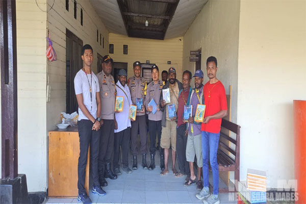 “Selain dengar saran dan masukan dari masyarakat terkait Kamtibmas lanjut “Kapolsek Mapia dan Kanit Binmas Melakukan pembagian Buku Cerita Alkitab berupa buku Renungan Harian dan buku Cerita sekolah minggu maksud dan tujuan agar Pihak gereja dan juga tokoh masyarakat dan tokoh adat selalu bergandengan tangan dalam menjaga Kamtibmas di Wilayah Distrik Mapia