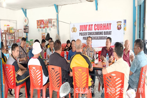 MediaSuaraMabes, Singkawang – Polsek Singkawang Barat untuk menampung keluhan masyarakat hari Jum’at ,13/Januari/2023 pukul 07.30 wib s/d 09.30 wib bertempat di Warkop AFO Jl. Sama – Sama No. 16 Kel. Pasiran Kec. Singkawang Barat telah dilaksanakan kegiatan Jum’at Curhat Polsek Singkawang Barat Polres Singkawang.