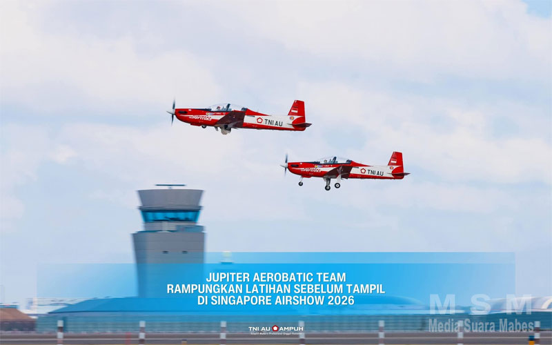 MediaSuaraMabes, Jakarta — Jupiter Aerobatic Team (JAT) TNI Angkatan Udara menuntaskan latihan terakhir di Bandara Internasional Changi, Singapura, pada Minggu (1/2/2026). Latihan ini menjadi tahap final validasi dan sinkronisasi menjelang penampilan resmi mereka pada ajang Singapore Airshow 2026.