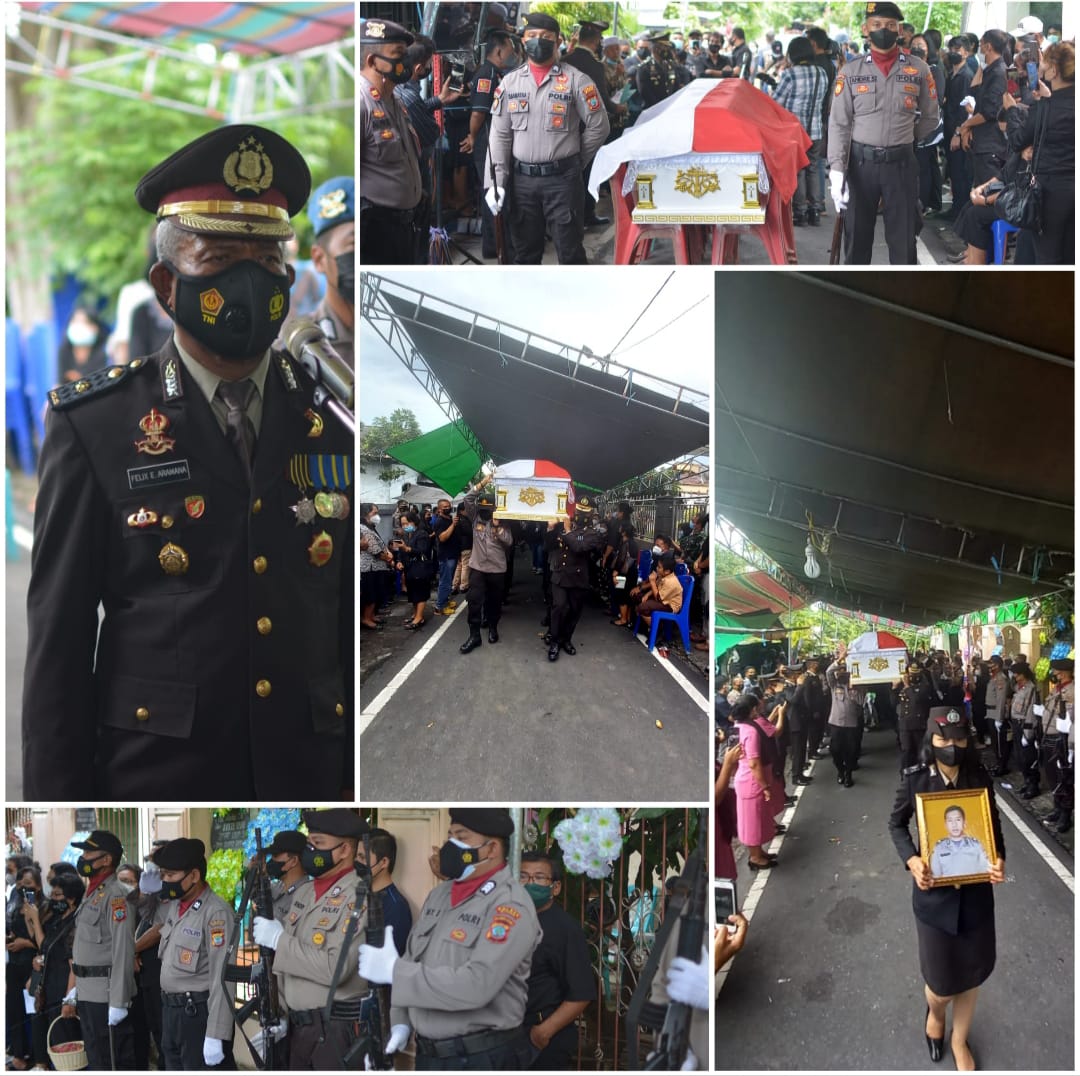 Persemayaman dan Pemberangkatan Jenazah Alm. Aiptu. Jemmy Dumaha di kawal sampai di pemakaman dengan protokol kesehatan yang ketat.