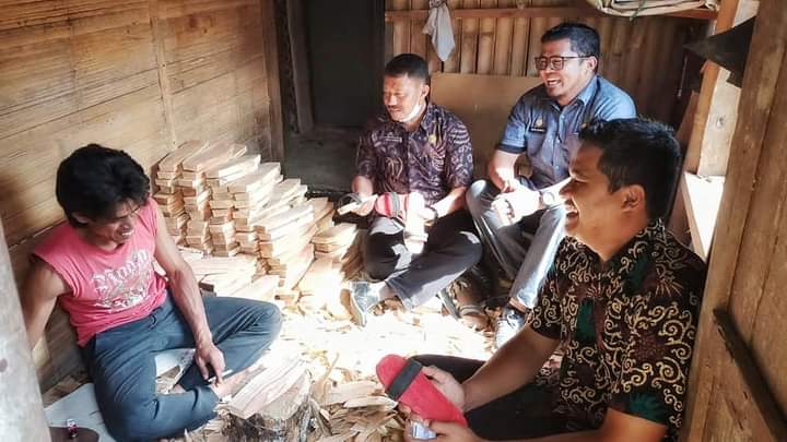 Kadis PerindagKop-UMKM Kab. Agam Dedi Asmar Sutan Pamenan, turun langsung meninjau “Pondok” pengrajin Tangkelek di kampuang Ranah, Jorong Parik Putuih.