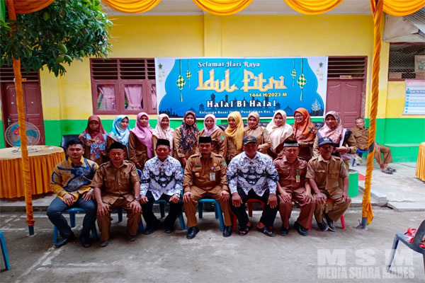 MediaSuaraMabes, Langkat || K3S Kecamatan Hinai bersama dengan para seluruh pengajar menggelar Halal Bi Halal Idul Fitri 1444 Hijriah dihalaman SD Negeri 053985 Suka Damai Timur. Selasa (09/05/23)