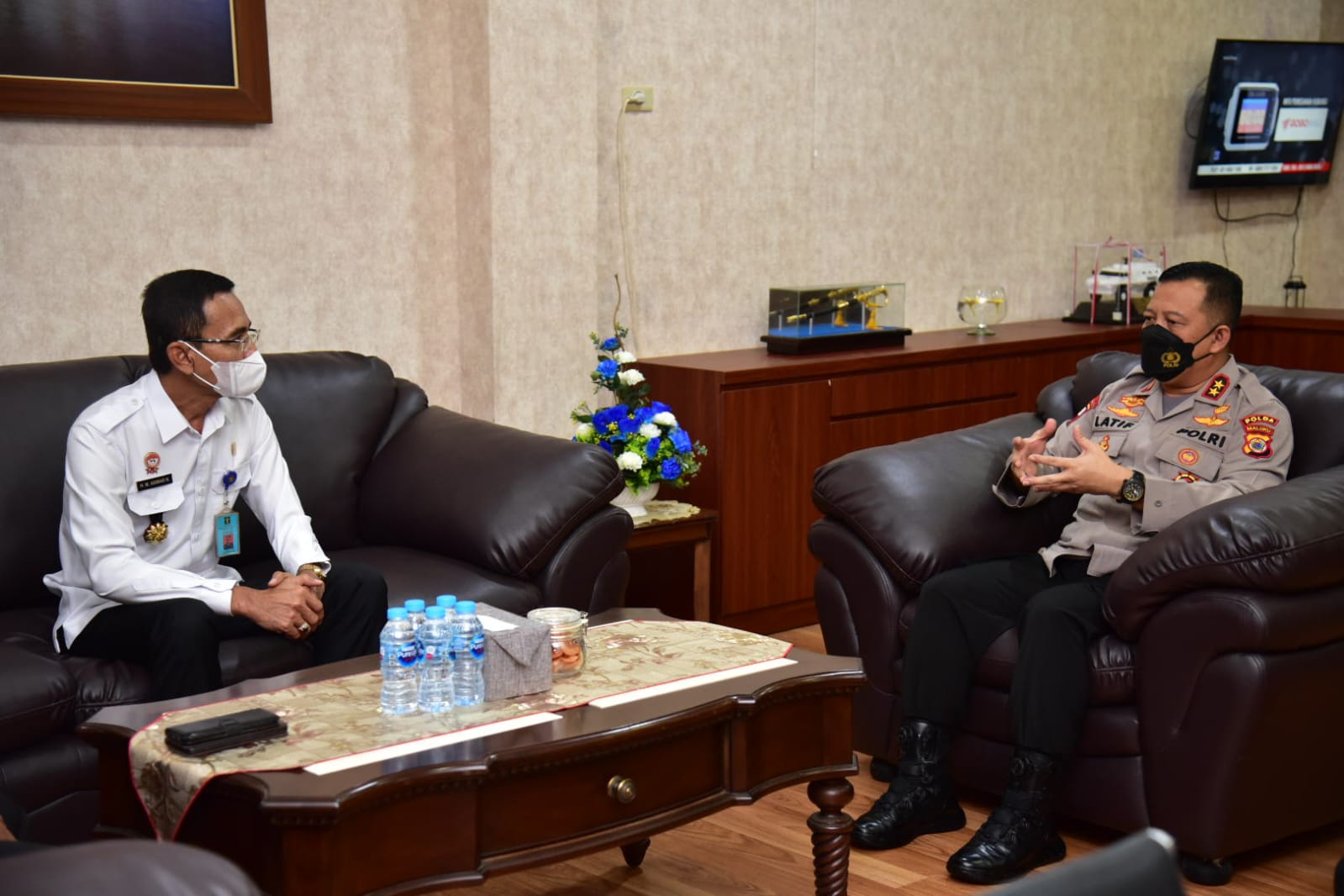 MediaSuaraMabes, Maluku – Kepala Kantor Wilayah Kementerian Hukum dan Hak Asasi Manusia Provinsi Maluku, H.M. Anwar N, menemui Kepala Kepolisian Daerah Maluku, Irjen Pol Drs. Lotharia Latif, SH., M.Hum untuk bersilaturahmi. Kunjungan silaturahmi dari Kakanwil Kemenkumham yang baru ini berlangsung di ruang kerja Kapolda, Markas Polda Maluku, Kota Ambon, Rabu (23/3/2022).