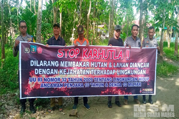 MediaSuaraMabes, Langkat | Guna mencegah terjadinya kebakaran hutan dan lahan (Karhutla), Kanit Binmas Polsek Hinai Aiptu H. Siswanto dan Bhabinkamtibmas Polsek Hinai Aiptu Nur jayadi gencar memberikan imbauan kepada masyarakat.