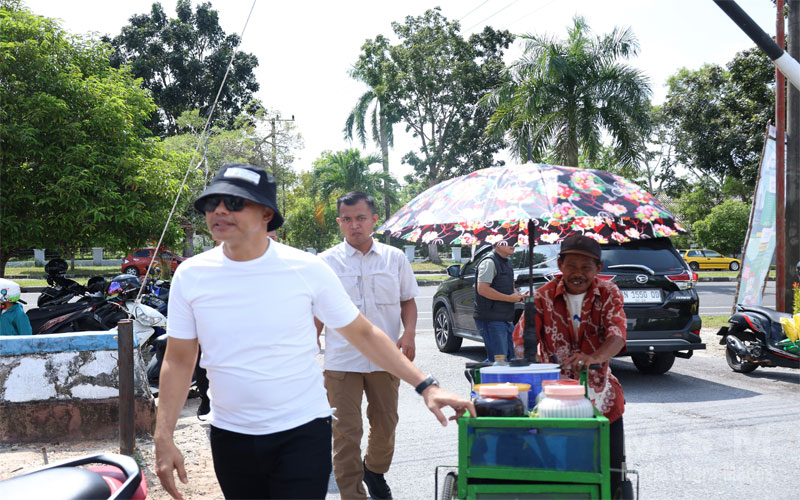 “Berapa semuanya Pak De, ini saya borong ya. Gerobaknya bawa masuk ke bazar, ikut saya kesini,”ucap Kapolda kepada Pak De.