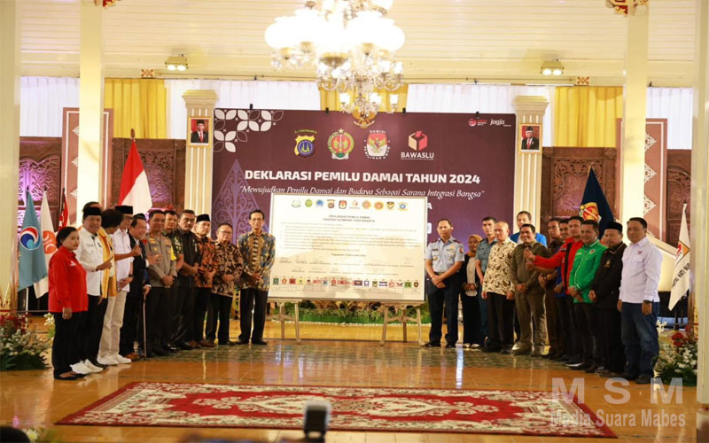 MediaSuaraMabes, Yogyakarta – Menyambut Pemilu Tahun 2024, Kapolda DIY Irjen Pol Suwondo Nainggolan, S.I.K., M.H., menghadiri Deklarasi Pemilu Damai Tahun 2024 Pemerintah D.I. Yogyakarta di Kompleks Kepatihan Yogyakarta, (Selasa, 21 November 2023).