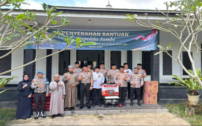 Dalam kesempatan tersebut, Kapolda Jambi juga menyerahkan bantuan berupa empat roll sajadah, dua unit kipas angin, satu unit genset, serta 20 karung beras guna mendukung kegiatan operasional dan pembinaan santri di pondok pesantren tersebut.