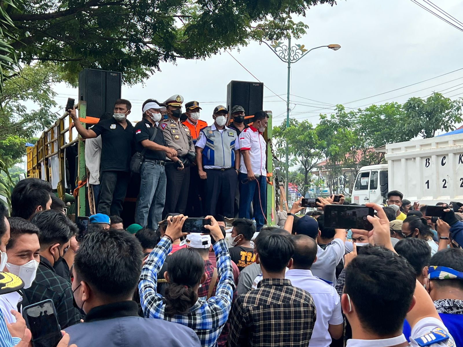 “Sejumlah spanduk dan berapa massa serta siapa koordinator aksinya sudah disampaikan ke Polri. Sedangkan aksi yang dilangsungkan juga tertib termasuk massa peserta aksi sangat kooperatif, sehingga kami berharap akan ada solusi yang terbaik bagi para awak truk tersebut”, tegasnya.