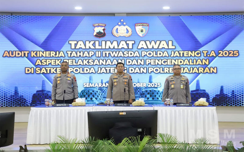 MediaSuaraMabes, Kota Semarang – Kapolda Jawa Tengah Irjen Pol Ribut Hari Wibowo menegaskan bahwa fungsi pengawasan memiliki peran vital dalam memastikan arah dan kualitas kinerja organisasi Polri. Hal tersebut disampaikan saat membuka kegiatan Taklimat Awal Audit Kinerja Tahap II TA 2025 Aspek Pelaksanaan dan Pengendalian di Gedung Borobudur Mapolda Jateng, Senin (6/10/2025).