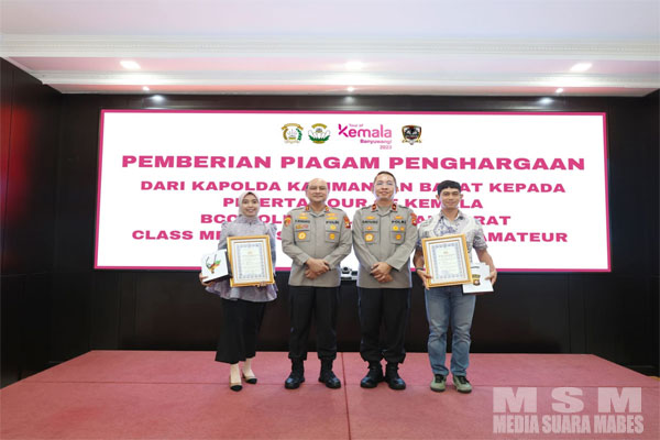MediaSuaraMabes, Pontianak Kalbar – Kapolda Kalbar Irjen Pol Pipit Rismanto, S.IK., M.H., memberikan penghargaan Kepada 2 orang atlet kalbar yang berhasil meraih juara pada Tour Of Kemala Banyuwangi 2023 di ruang Aula Graha Kathulistiwa Polda Kalbar pada hari Kamis (12/10).