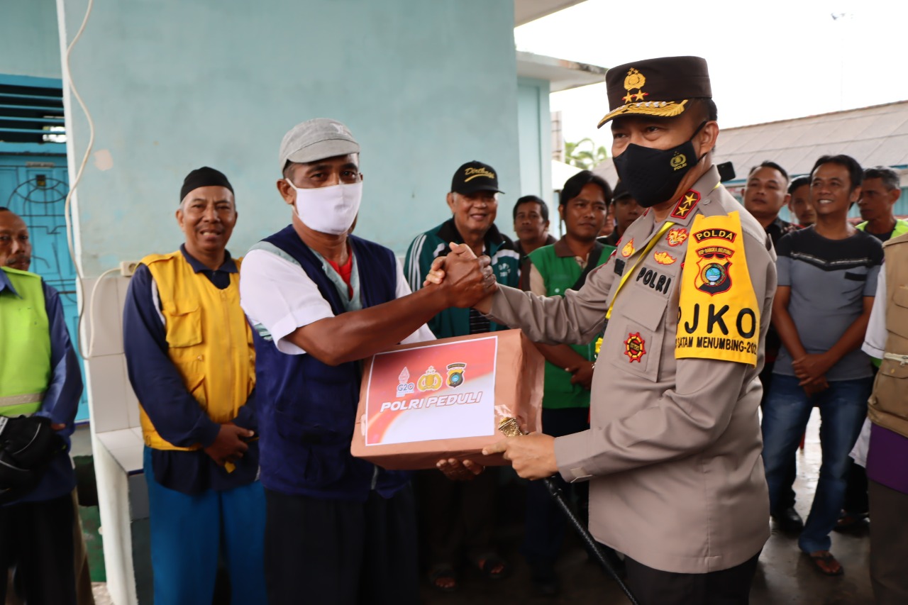 Kapolda Kep. Babel Dan Kapolres Beltim bagikan Bansos “POLRI PEDULI” Ke Ojek, Sopir Truk Dan Nelayan Di Manggar
