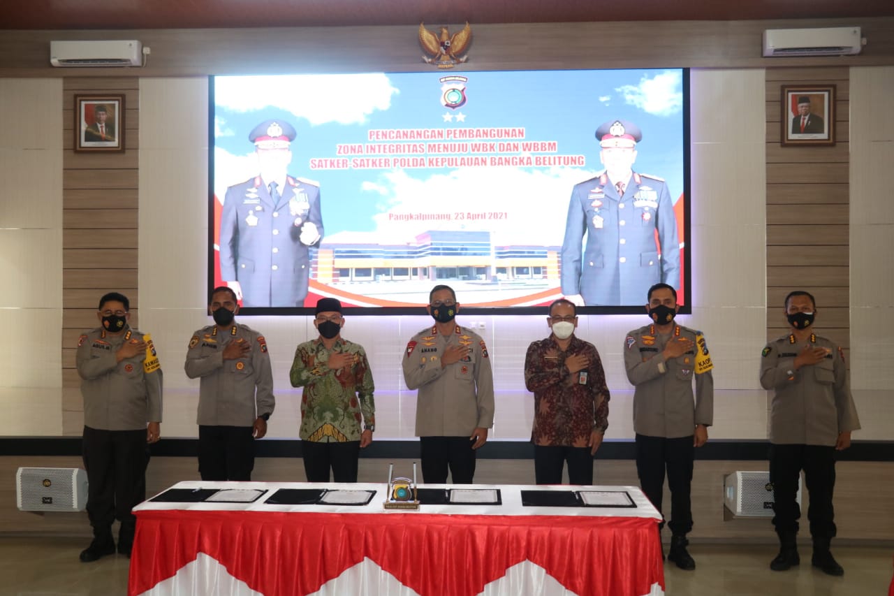 SuaraMabes, Babel – Irjen Pol Drs. Anang Syarif Hidayat berkomitmen Polda Kep. Bangka Belitung dalam rangka pencanangan Pembangunan Zona Integritas (ZI) menuju wilayah Bebas Korupsi (WBK) dan Wilayah Birokrasi Bersih dan Melayani (WBBM).