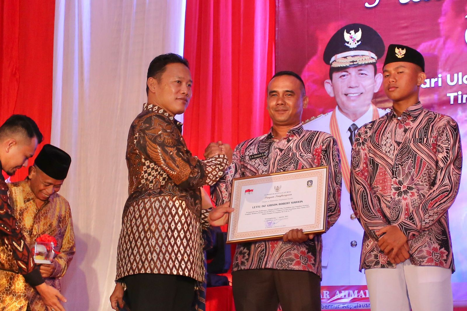 Kegiatan ini dihadiri oleh Gubernur Kepulauan Riau H. Ansar Ahmad, S.E., M.M, Ketua TP PKK Provinsi Kepulauan Riau Dra.Hj Dewi Kumalasari, M.Pd, Kaskogabwilhan I Mayor Jenderal TNI Lismer Lumban Siantar, S.Ip., Ketua DPRD Provinsi Kepulauan Riau Jumaga Nadeak, S.H, Seketaris Daerah Kepulauan Riau Drs. Adi Prihantara, MM, Danrem 033/WP Brigjen TNI Yudi Sulistyanto M.A., M.Sc, Danlantamal IV Tanjungpinang Laksamana Pertana TNI Kemas M Ikhwan Madani S.Sos., M.Si, Kepala Zona Kamla Maritim Barat Laksma Bakamla Hadi Pranoto, S.Sos.,M.Si(Han), Wakapolda Kepulauan Riau Brigjen Pol Drs. Rudi Pranoto, Danduskamla Koarmada I diwakili Kaban Pers Kolonel Laut (P) Ali Subhan,Danlanud RHF Tanjungpinang diwakili Kadispers Mayor Adm Muhamad Yunus, S.Sos, PJU Polda Kepulauan Riau,Pengurus LVRI Provinsi Kepulauan Riau H. Rochman, Pejabat Fungsional Utama, Tim Percepatan Pembangunan, Staf Ahli, Asisten serta Kepala OPD Pemerintahan Provinsi Kepulauan Riau serta Seluruh Pimpinan Vertikal.