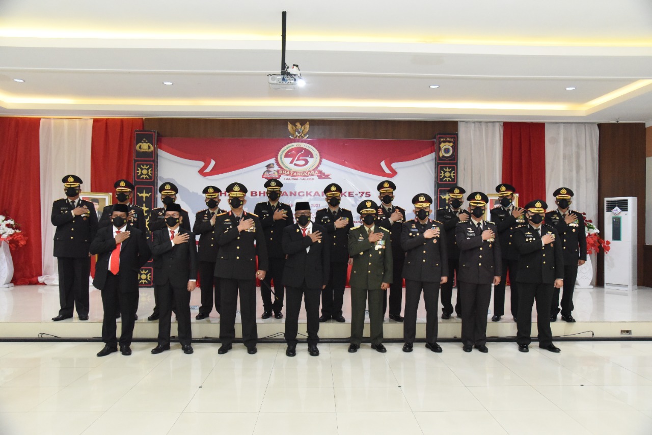 Upacara peringatan hari Bhayangkara ke 75 ini di laksanakan melalui virtual yg tersambung langsung dengan mabes polri.