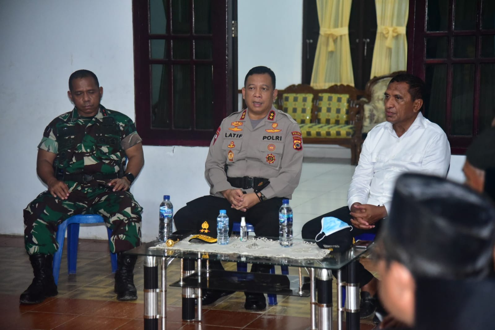 MediaSuaraMabes, POLDAMALUKU — Kepala Kepolisian Daerah Maluku, Irjen Pol Drs. Lotharia Latif, SH, M.Hum bersama Danrem 151/Binaiya, Brigjen TNI Arnold A.P Ritiauw, menyambangi warga berkonflik di Pulau Haruku, Kabupaten Maluku Tengah, Rabu, (26/1/2022) malam.