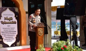 MediaSuaraMabes, Maluku – Kapolda Maluku Irjen Pol Drs. Lotharia Latif, SH, M.Hum., bersama Kadensus 88 AT Polri, Irjen Pol Drs. Marthinus Hukom, SIK., M.Si., menghadiri peresmian Masjid Rahmatullah, di Negeri Tulehu, Kecamatan Salahutu, Kabupaten Maluku Tengah, Rabu (30/3/2022). Selain masjid, dua jenderal bintang 2 Polri itu juga menyaksikan pengukuhan Yayasan Pondok Pesantren Darul Muluk Rahmatullah sebagai pusat pendidikan islam washatiyah dan deradikalisasi Densus 88 AT Polri di Maluku.