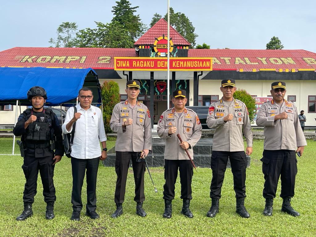 MediaSuaraMabes, POLDAMALUKU — Kepala Kepolisian Daerah Maluku Irjen Pol Drs. Lotharia Latif, mengambil apel di Markas Brimob Kompi 2 Batalyon B Piru, dalam rangkaian kunjungan kerjanya di Kabupaten Seram Bagian Barat (SBB), Selasa (1/2/2022).
