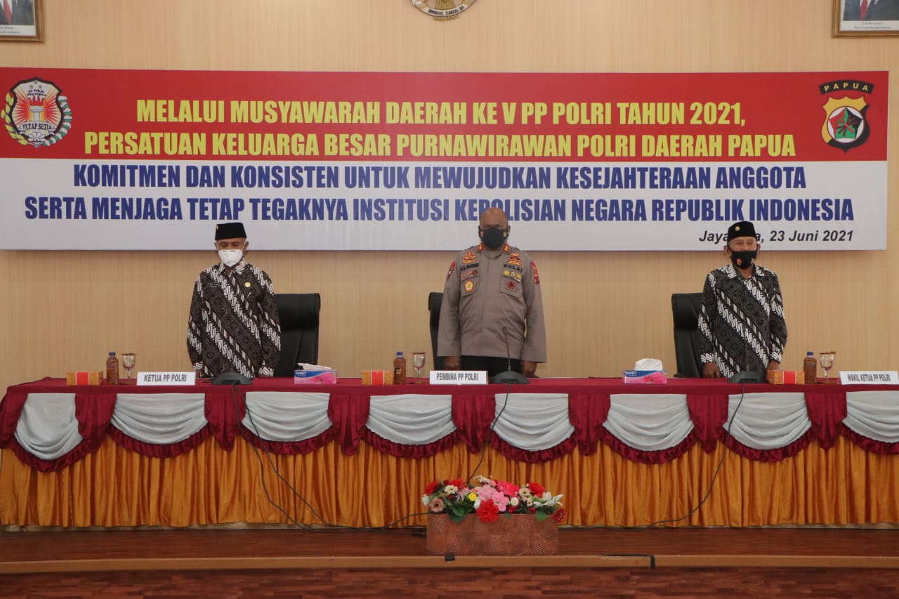 MediaSuaraMabes, Jayapura – Pada hari Rabu tanggal 23 Juni 2021, bertempat di Aula Rastra Samara Mapolda Papua telah dilaksanakan kegiatan Musyawarah Daerah Ke V Persatuan Purnawirawan (PP) Polri Tahun 2021 yang dipimpin langsung oleh Kapolda Papua Irjen Pol. Mathius D. Fakhiri, S.I.K.