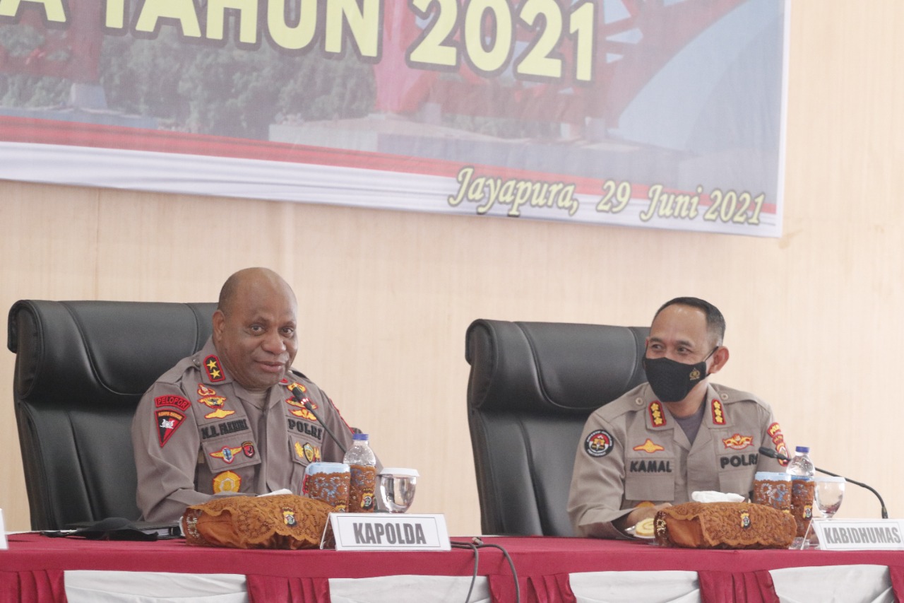 Dalam kesempatan tersebut, disampaikan bahwa Polda Papua telah menjabarkan program prioritas Kapolri dalam rangka meningkatkan pelayanan kepada masyarakat untuk terciptanya situasi kamtibmas yang kondusif yakni masyarakat merasa aman dan nyaman kapan dan dimana saja berada, program prioritas Kapolri tersebut telah dilaksanakan oleh satuan kerja di lingkungan Polda Papua, Polres Jajaran, Polsek dan Polsubsektor baik dalam bentuk pembinaan, pelayanan kepada masyarakat maupun operasional Kepolisian.