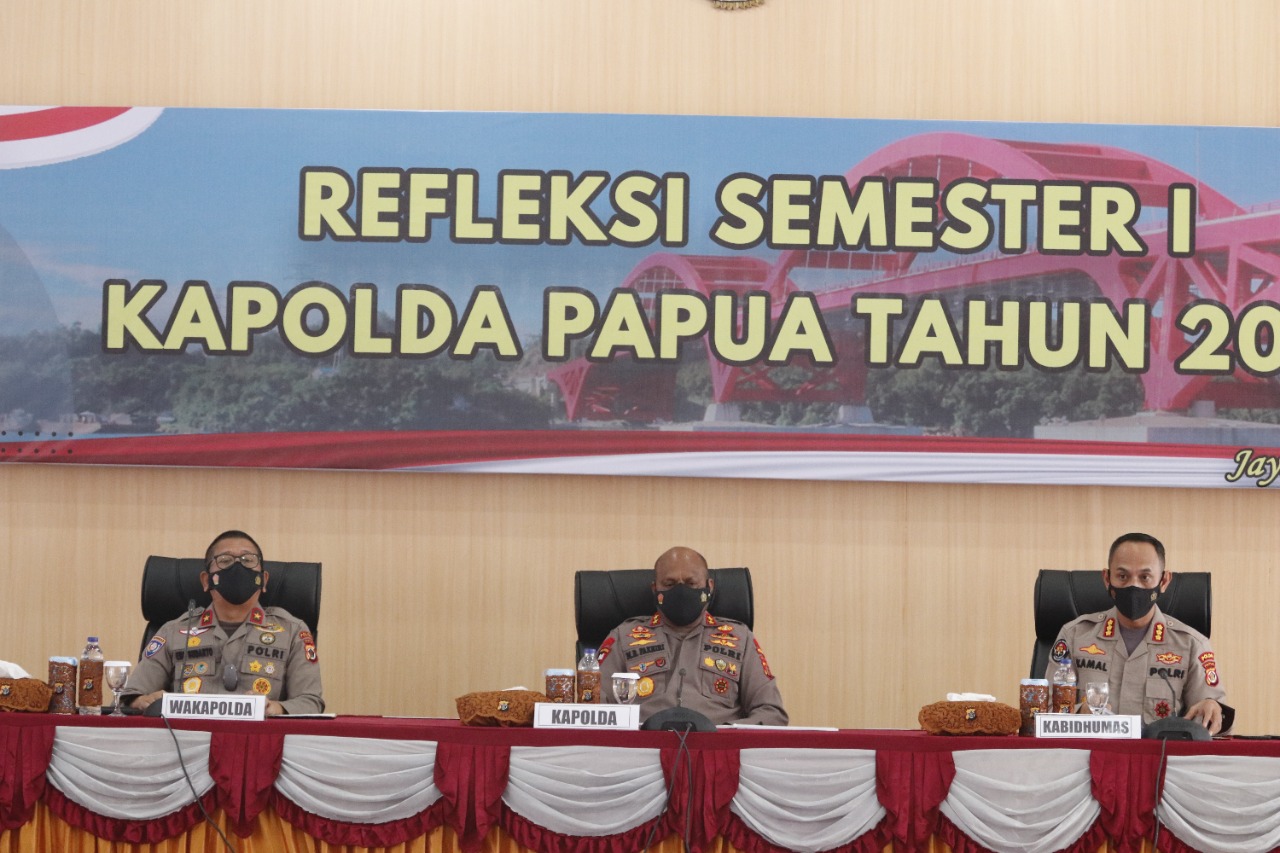 SuaraMabes, Jayapura – Pada hari Selasa tanggal 29 Juni 2021, bertempat di Aula Rasta Samara Polda Papua, Kapolda Papua Irjen Pol. Mathius D. Fakhiri, S.I.K. memimpin kegiatan Refleksi Semester I Tahun 2021 Polda Papua.