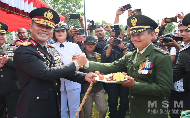 Dalam peringatan tersebut Kapolda Sulteng, Irjen. Pol. Irjen. Pol. Dr. Agus Nugroho, S.H., S.I.K., M.H. berkesempatan melakukan pemotongan tumpeng sebagai ucapan syukur HUT ke-79 TNI yang diserahkan kepada seorang pamen Korem 132/Tadulako.