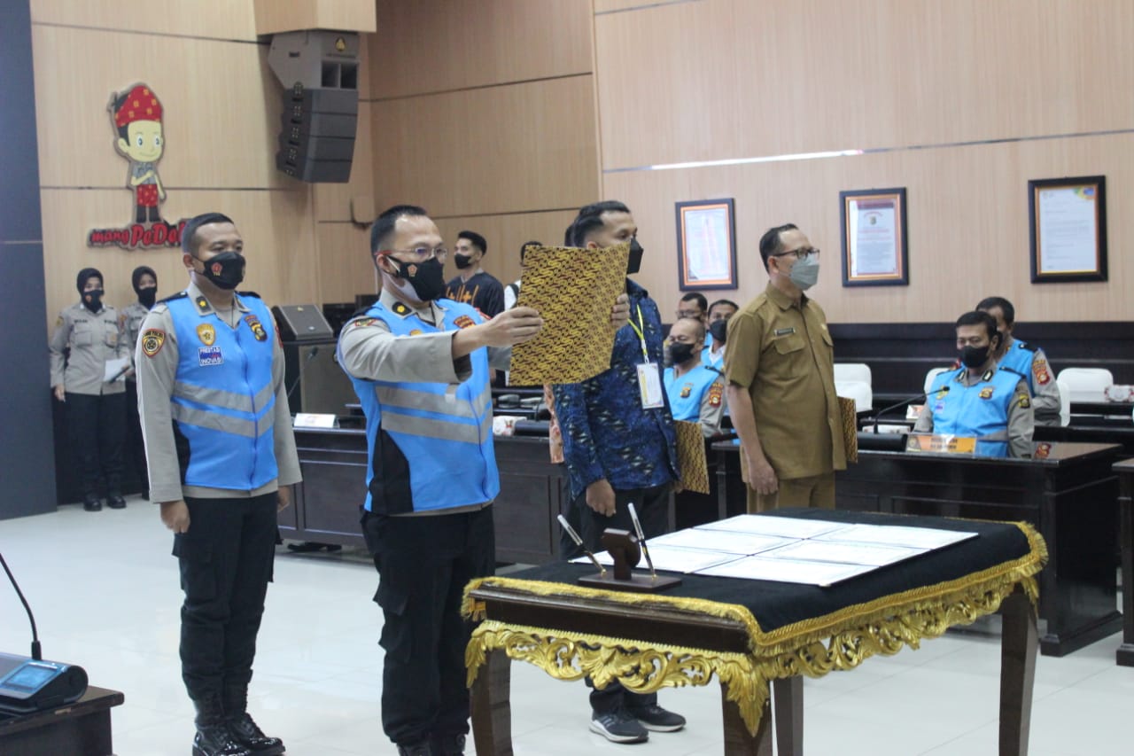MediaSuaraMabes, PALEMBANG — Kapolda Sumsel Irjen Pol. Drs. Toni Harmanto, M.H di dampingi Karo SDM Polda Sumsel Kombes Pol Ucu Kuspriyadi,SIK,MSI,MH memimpin Upacara pengambilan sumpah dan penandatanganan fakta integritas panitia dan peserta seleksi Sekolah Inspektur Polisi Sumber Sarjana (SIPSS) TA. 2022 pada hari Senin (31/1/2022) yang bertempat di ruang Rekonfu Mapolda Sumsel.