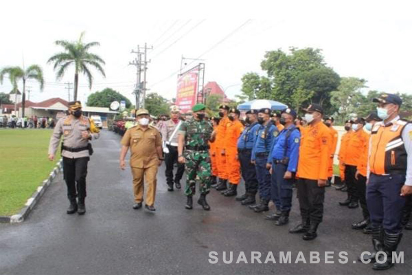 Sementara pasukan apel terdiri dari TNI, Polri, Satpol PP, BPBD, Dishub, PMI, Basarnas, Pramuka, Saka Bhayangkara, serta Ormas dan Komunitas Relawan,