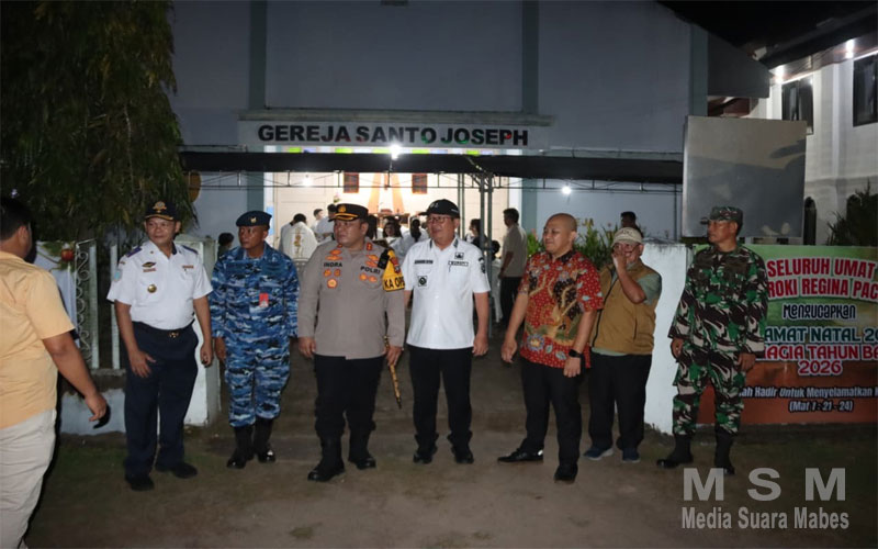 MediaSuaraMabes, Babel – Kapolres Belitung Timur AKBP Indra Feri Dalimunthe, SH, SIK, MH, MM dan Bupati Belitung Timur Kamarudin Muten mengecek langsung keamanan beberapa gereja di Manggar, Rabu (24/12/25) malam.