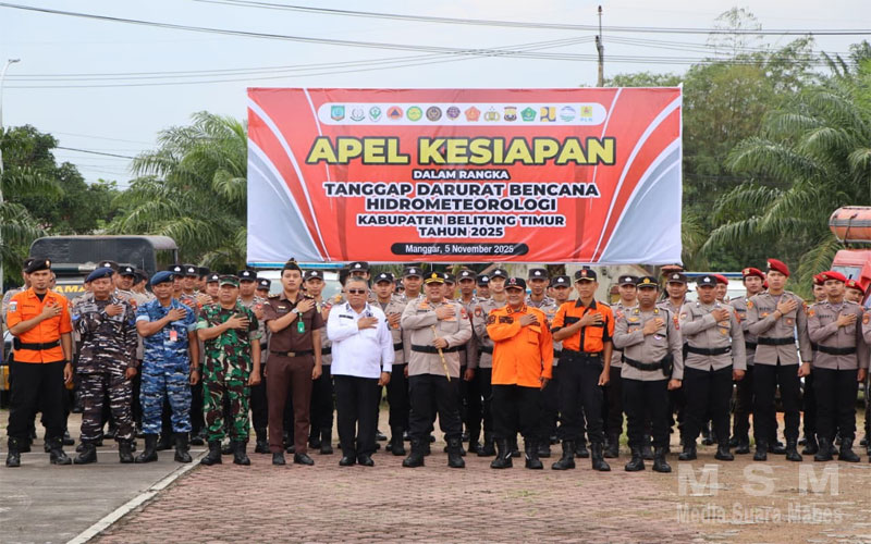 MediaSuaraMabes, Babel – Polres Belitung Timur bersama Instansi terkait melaksanakan “Apel Gabungan Siaga Bencana Tahun 2025” dalam rangka tanggap darurat bencana Hidrometeorologi di Kab. Beltim Sebagai wujud kesiapsiagaan untuk menghadapi bencana alam yang akan terjadi di Kabupaten Belitung Timur bertempat di halaman Mapolres Belitung Timur, Rabu (4/11/2025).