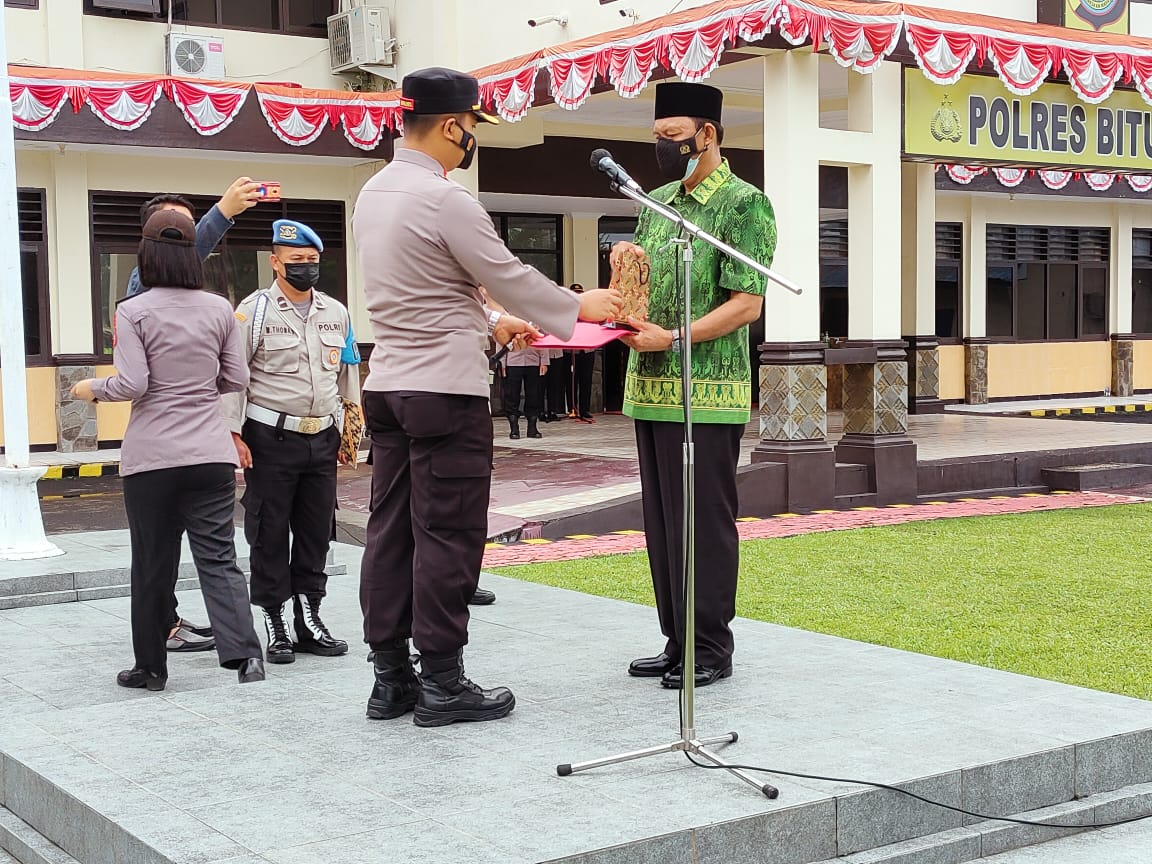 MediaSuaraMabes, BITUNG – Kapolres Bitung, AKBP Alam Kusuma Irawan, SH.SIK.,MH, Pimpin Upacara Pelepasan Purna Tugas AKP (PUR) Hajir Eato, SPdI, yang digelar di lapangan Polres Bitung.
