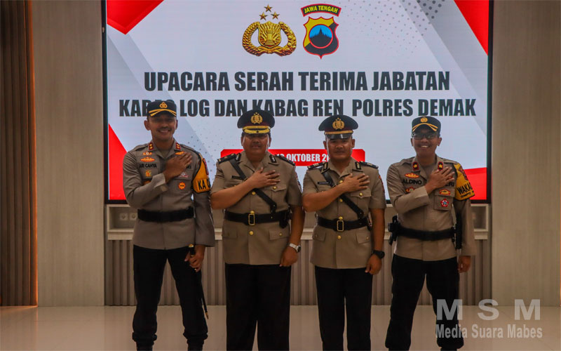 MediaSuaraMabes, Demak – Polres Demak menggelar Upacara Serah Terima Jabatan (Sertijab) Kepala Bagian Perencanaan (Kabagren) dan Kepala Bagian Logistik (Kabaglog) di Aula Wicaksana Laghawa Polres Demak, Kamis (10/10/2024).
