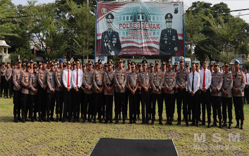 MediaSuaraMabes, Demak – Kapolres Demak AKBP Muhammad Purbaya memimpin upacara pelantikan Kapolsek Dempet serta kenaikan pangkat pengabdian Polri.