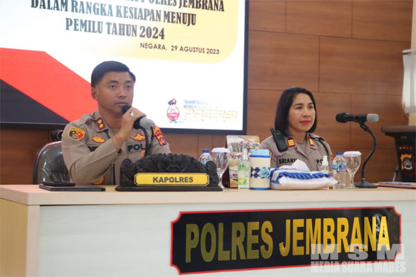 MediaSuaraMabes, Jembrana Bali – Dalam rangka memastikan kesiapan menuju Pemilihan Umum (Pemilu) tahun 2024, pada hari Selasa tanggal 29 Agustus 2023 Kapolres Jembrana, AKBP I Dewa Gde Juliana, S.H, S.I.K, M.I.K., memberikan arahan kepada seluruh Bhabinkamtibmas Polres Jembrana. Kegiatan yang dilaksanakan di Aula Polres Jembrana pada pukul 08.10 s.d 08.50 WITA ini bertujuan untuk memastikan kelancaran dan keamanan pelaksanaan Pemilu mendatang.