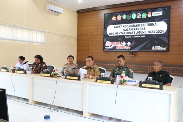 MediaSuaraMabes, Jembrana Bali – Rapat koordinasi melibatkan sejumlah stakeholder terkait untuk kelancaran pelaksanaan Operasi Mantap Brata Agung 2023-2024 Pengamanan Pemilu Tahun 2024. Acara yang bertempat di Aula Polres Jembrana tersebut dipimpin Kapolres Jembrana AKBP I Dewa Gde Juliana, S.H., S.I.K., M.I.K.