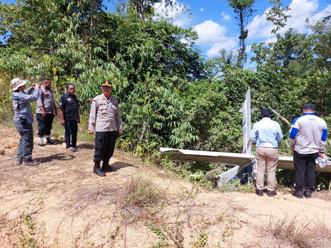 “Setibanya di TKP kami bersama Tim langsung melakukan investigasi terkait bangkai pesawat AMA PK-RCQ. Dari hasil investigasi diperoleh hasil bahwa badan pesawat jenis AMA PK – RCQ terbentur pada tunggak kayu maupun perbukitan dan terperosok kedalam jurang dengan kedalaman ± 2 M,” ungkap Kapolres.