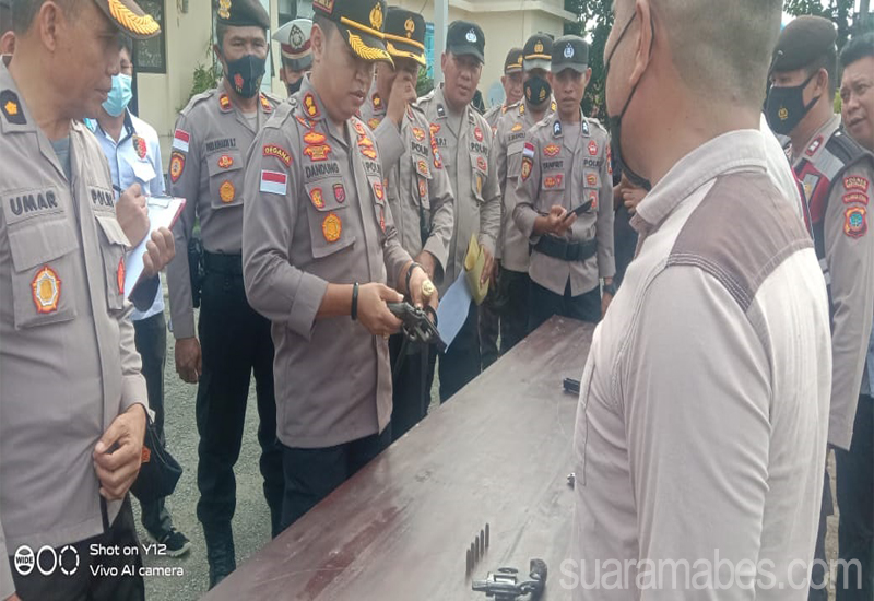 MediaSuaraMabes, Talaud – Kapolres Kepulauan Talaud AKBP Dandung Putut Wibowo S.Ik. SH. MH Pada hari Selasa Tanggal 19 Juli 2022 selesai melaksanakan Apel Pagi melakukan Pemeriksaan terhadap Personil Polres Kep Talaud yang memegang Senjata Api Dinas dan Personil yang dipercayakan memegang Kendaraan Dinas Roda 4 dan Roda dua.