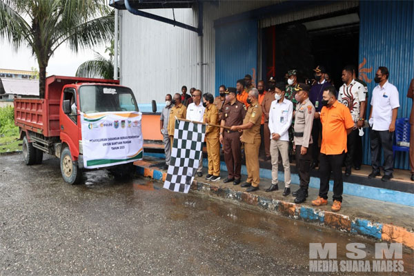 MediaSuaraMabes, Yapen – Kapolres Kepulauan Kepulauan Yapen AKBP Herzoni Saragih menghadiri acara launching Penyerahan Bantuan Pangan Pemerintah sebagai upaya untuk menangani kerawanan pangan, kemiskinan, stunting, gizi buruk, keadaan darurat dan melindungi produsen serta konsumen dan pengendalian dampak inflasi, Melalui Perum Bulog Kabupaten Kepulauan Yapen. bertempat di Halaman Gudang Perum Bulog Serui. Serui (3/4/2023).
