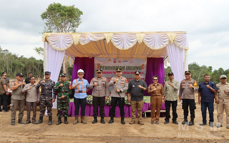 MediaSuaraMabes, Ketapang Kalbar – Kapolres Ketapang AKBP Muhammad Harris S.H., S.I.K., M.I.K., CPHR bersama Forum Koordinasi Pimpinan Daerah (Forkopimda) Kabupaten Ketapang melaksanakan kegiatan penanaman jagung hibrida pada kuartal pertama tahun 2026. Kegiatan ini berlangsung di lahan pertanian Desa Ratu Elok, Kecamatan Manis Mata, sebagai bagian dari upaya mendukung ketahanan pangan dan peningkatan kesejahteraan masyarakat pada Sabtu (31/01/2026).