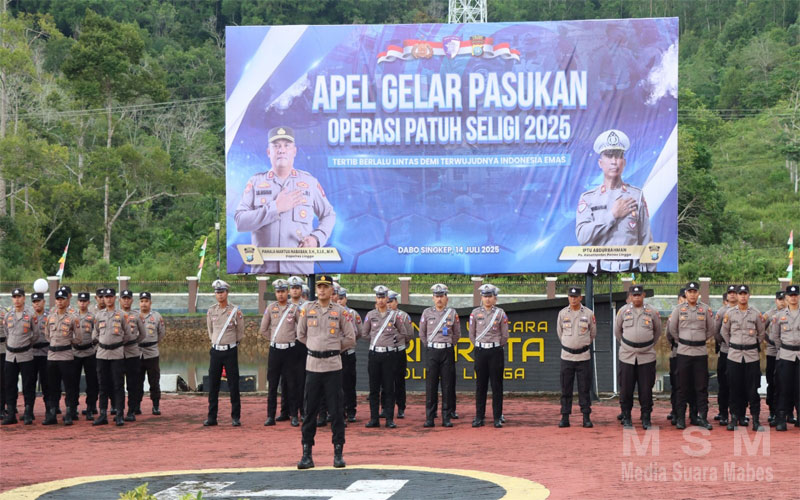 MediaSuaraMabes, Aceh – Dalam Upaya menciptakan budaya tertib berlalu lintas sekaligus mendukung terwujudnya visi besar Indonesia Emas 2045, Polres Lingga menggelar Apel Gelar Pasukan Operasi Patuh Seligi 2025, di Lapangan Tribrata Polres Lingga. Kegiatan ini dipimpin langsung oleh AKBP Pahala Martua Nababan, S.H., S.I.K., M.H., Kapolres Lingga. Senin, (14/7/2025)