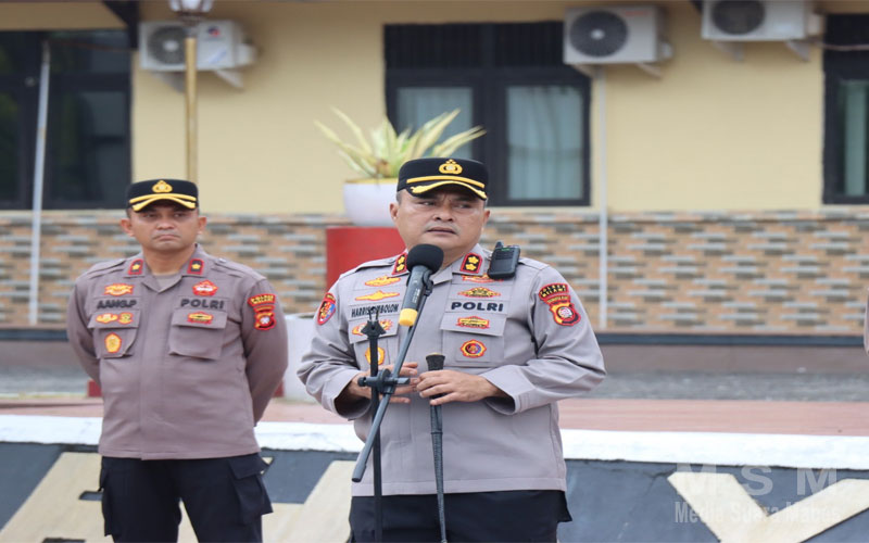MediaSuaraMabes, Melawi Kalbar – Penekanan mendukung Asta Cita Program Pemerintah Ketahanan Pangan Swasembada Jagung di sampaikan Kapolres Melawi Polda Kalbar AKBP Harris Batara Simbolon, S.I.K., S.H., M.Tr.Opsla di hadapan Waka Polres Melawi Kompol Aang Permana, S.I.P., S.H., M.A.P, Pejabat Utama di lingkungan Polres Melawi dan seluruh personel saat apel pagi jam pimpinan di halaman apel bhayangkara, Senin (30/3/26)