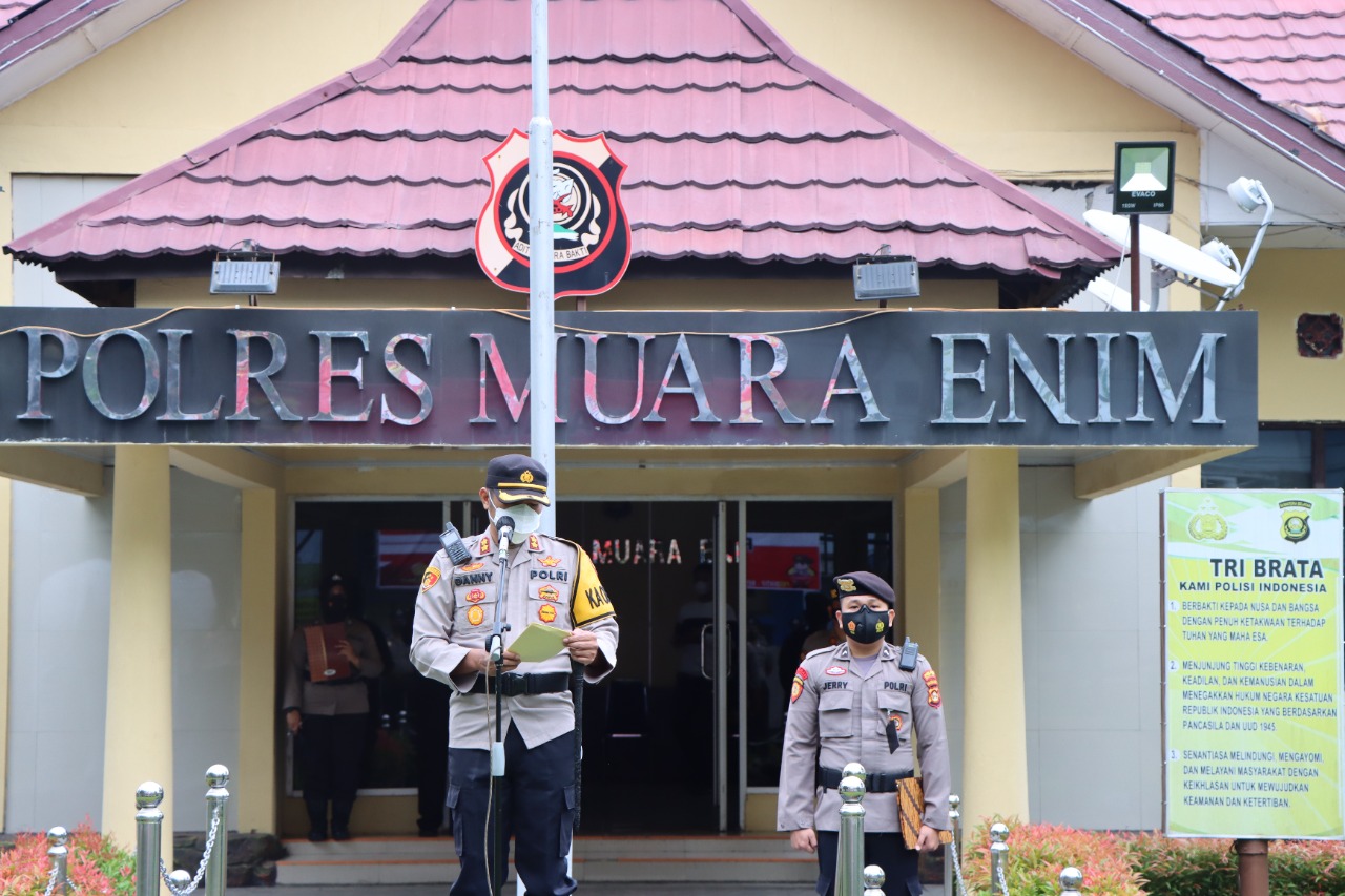 MediaSuaraMabes, Muara Enim — Kapolres Muara Enim AKBP Danny Sianipar SIK pimpin Upacara Kenaikan Pangkat Personil Polres Muara Enim, bertempat di Lapangan Apel Mapolres Muara Enim. Sabtu, (01/01/2022).